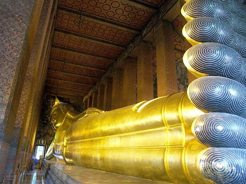 Direkt hinter dem Königspalast wartet der letzte Tempel für mich, Wat Pho mit dem 45m langen liegenden Buddha. Hier befindet sich auch eine der renommiertesten Massageschulen des Landes, doch dafür ist leider dieses Mal keine Zeit.