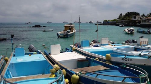 Schon wieder heißt es Abschied nehmen. Unsere kleine Jacht wartet am Hafen schon auf uns um uns auf die Insel Santa Cruz zu schippern. Zur Sicherheit schlucke ich noch eine Pille gegen Seekrankheit, denn die See ist bewegt. Knapp 2 Stunden fahren wir über das Meer, vorbei an der Insel Santa Fe nach Puerto Ayora auf Santa Cruz. Hier dreht die Welt sich schon ein bisschen anders, das merkt man direkt bei der Einfahrt in den Hafen. Viele kleine Jachten liegen im Hafen und schon vom Wasser aus können wir erkennen, dass dieser Ort viel größer ist als Puerto Baquerizo Moreno. Puerto Ayora ist mit rund 12.000 Einwohnern der größte und damit auch bedeutendste Ort auf den Galapagosinseln. Ein Bus holt uns am Hafen ab und fährt uns in unser Hotel Mainao. Ein süßes Hotel, total verwinkelt gebaut sieht es eher griechisch aus, oder wie ein Hundertwassergebäude. Luis hat uns den Tipp gegeben gleich mal zum nahe gelegenen Fischmarkt zu laufen, den dort haben wir gute Chancen Tiere zu sehen. Nach noch nicht mal 5 Minuten Fußweg erreichen wir den kleinen Markt und richtig, die Fischer sind umzingelt von Seelöwen, Pelikanen, Möwen und Wasserechsen die nur darauf warten einen Leckerbissen abzubekommen. Und alle bekommen immer ein Stückchen ab. Das Fischfilet der Fischer, den Kopf der Seelöwe und den Rest die Pelikane und Echsen. Ein tolles Spektakel. Zum Mittagessen laufen wir wieder zurück an den Hafen um in einem netten Restaurant zu speisen. Danach steigen wir in eines der vielen Wassertaxis um an einen nur per Boot erreichbaren Hafenbereich zu gelangen.