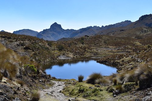 Heute steht eine Wanderung auf dem Programm. Für Naturliebhaber und Wanderer ist der 30 Kilometer entfernte Nationalpark Parque Nacional Cajas das optimale Ausflugsziel. Die eindrucksvolle Panoramalandschaft ist von der letzten Eiszeit geprägt. In einer Höhe zwischen 3.000 und 4.000 Meter befinden sich 31 atemberaubende Lagunen. Mit seiner einzigartigen Fauna und Flora bietet der Nationalpark vielen seltenen Vogelarten einen Zufluchtsort. Unsere Wanderung startet auf 3600 Meter Höhe mit super Weitblick über die Lagunen und die Berge des Parks. Eigentlich müsste es um diese Jahreszeit regnen und nebelig sein, aber wir sind mal wieder Glückskinder und alle total begeistert von der Umgebung und dieser tolle Tour, zum Glück bergab. Am Ende der Wanderung erreichen wir eines der für diese Region bekannte Polylepiswäldchen. Diese sind eine der am Höchsten gelegenen Wälder unseres Planeten.