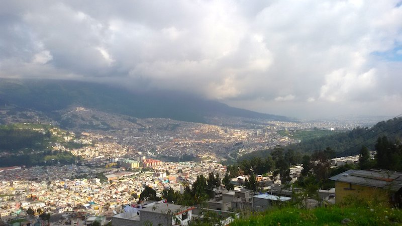 Nach einem köstlichen Frühstück mit Obst und frisch gepressten Saft geht es auf Entdeckungstour durch Quito. Als erstes besichtigen wir die Neue Kathedrale Basílica del Voto Nacional, die weniger für ihr Interior als für den tollen Ausblick auf das Centro Histórico und den Berg Panecillo bekannt ist. Der Aufstieg auf die Türme ist sehr abenteuerlich, denn man muss über einen langen Balken balancieren und dann eine sehr steile, enge Treppen erklimmen. Schwindelfrei sollte man auf jeden Fall sein! Dann fahren wir in die Altstadt von Quito, die wir zu Fuß besichtigen. Die Altstadt von Quito wurde 1978 neben Krakau als erste Stadt der Welt zum UNESCO-Kulturerbe erklärt. In einem der Cafes auf dem Plaza de la Independencia kann man perfekt das Gewirr aus Spaziergängern, Lottoverkäufern und Indigenos in bunten Gewändern verfolgen, die ihre Textilien, Avocados, Erdbeeren und Chirimoyas anpreisen. Wir haben das Glück, die montägliche Parade vor dem Regierungsgebäude mitzuerleben und den ecuadorianischen Präsidenten live zu sehen.