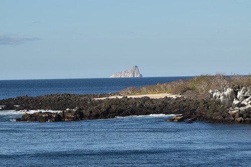 Aber nicht nur Seelöwen sehen wir auf der unserer Wanderung über die Insel, sondern auch jede Menge Meeresechsen, Blaufußtölpel und Fregattvögel, die die Insel als Nistplatz nutzen. Es ist unglaublich wie nah wir den Tieren kommen. Im Anschluss an unsere Wanderung bekommen wir die Gelegenheit zu einer weiteren Schnorchel Tour. Das Wasser ist wirklich eiskalt aber es lohnt sich auch hier den Kopf ins Wasser zu stecken. Seelöwen tauchen auf uns zu oder an uns vorbei. Meeresechsen weiden an Wasserpflanzen und große Fische und Fischschwärme schwimmen um uns herum. Mir ist richtig schlecht vor Kälte und Anstrengung aber trotzdem bin ich glücklich über dieses tolle Erlebnis. Zum Mittagessen ankern wir direkt vor dem puderzuckerweißen Strand Ochoa, der nur per Boot erreichbar ist. Erst nach dem Essen dürfen wir an Land gehen oder in die Fluten tauchen. Ein Seelöwe versucht mit lautem Gebrüll seinen Strand zu verteidigen und schwimmt um die kälteresistenten Badenden herum. Ein Pelikan gesellt sich ebenfalls zu den Schwimmern. Ansonsten haben wir den Strand ganz für uns alleine und genießen die wärmende Sonne und die fast unwirklich erscheinende Kulisse.