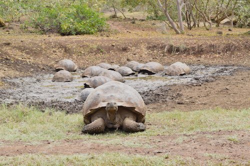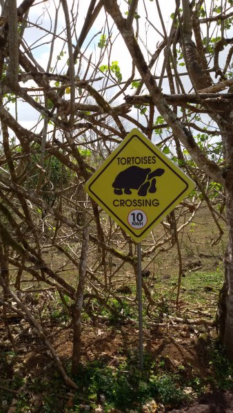 Wir wandern durch die grüne verwunschene Landschaft mit bemoosten Bäumen, die an Brokkoli erinnern. Weiter geht es, vorbei an dem kleinen Ort Santa Rosa in das private Reservat El Chato in dem man “wilde” Riesenschildkröten in ihrem natürlichen Habitat erleben kann. Auf dem Weg dorthin sehen wir wieder vom Bus aus viele wild lebende Riesenschildkröten und halten am Straßenschild „ Turtle Crossing“ um ein Foto zu schießen.