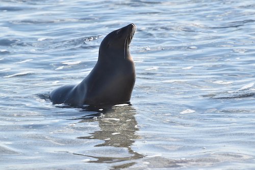 Die Hähne des Ortes haben mich heute geweckt. Davor habe ich wie ein Murmeltier geschlafen. Da es noch Zeit bis zum Frühstück ist, laufe ich mit einer weiteren Frühaufsteherin schon einmal zum Hafen und bewundere die knallroten Klippenkrebse, Pelikane, Erdechsen und Seelöwen die auch schon wach sind. Nach dem Frühstück starten wir zu einer Bootsfahrt zur Insel Lobos. Die kleine Insel ist nach den vielen Seelöwen die hier leben benannt.