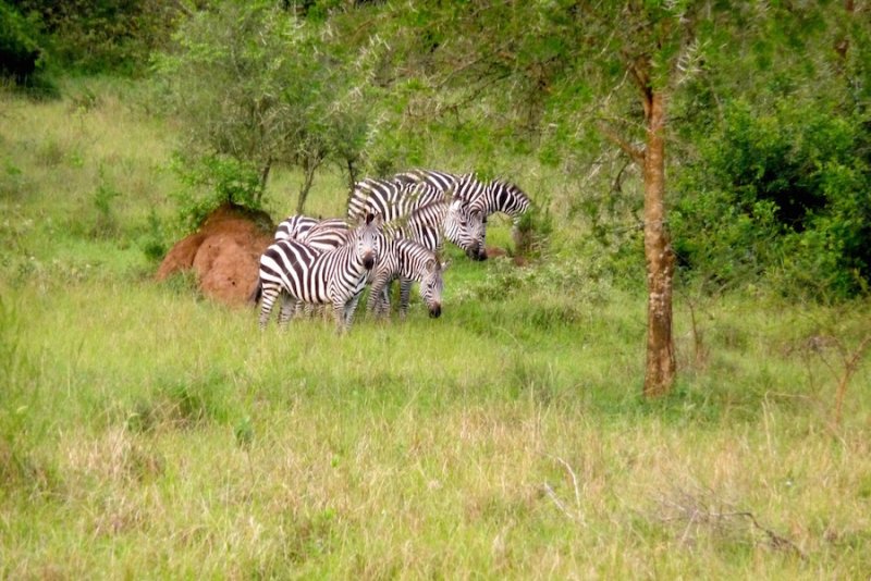 Schöne, großzügige Zelte laden uns zum relaxen ein. Wir können sogar den Lake Mburo von unserer Holzplattform aus sehen, auf der die Zelte stehen. Trotz des einsetzenden Regen wollen wir am Nachmittag bei einem Game Walk den Nationalpark erkunden. Aber erst einmal genießen wir nach der langen Fahrt unseren Lunch und den wunderschönem Ausblick auf die Landschaft und auf den See. Von dort aus sehen wir auch die ersten Zebras dieser Reise.