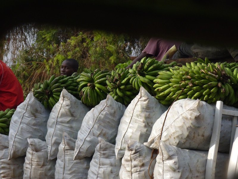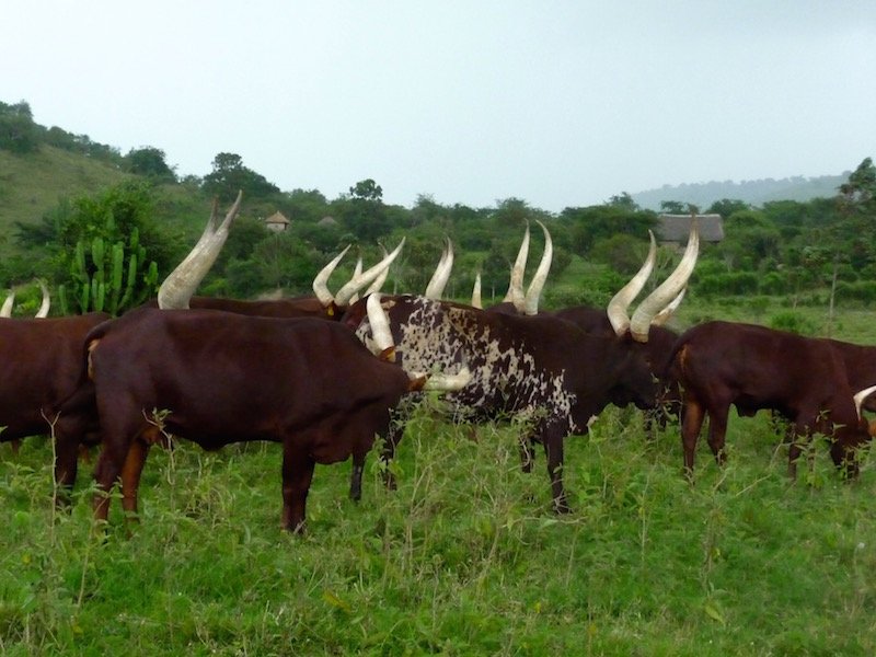 Diverse Speed-Humps, eingelassene Straßenschwellen als Sicherheitsmaßnahme für die Dörfer, ließen ein zügiges Vorankommen eigentlich sowieso nicht zu. Nach mehreren Stunden Fahrt auf dieser Strecke waren wir müde und auch ein wenig enttäuscht, hatten wir uns Uganda doch exotischer vorgestellt, mit mehr Wildtieren, dafür weniger Menschen und vor allem weniger Verkehr und Zersiedelung entlang der Strecke. Bis nach Fort Portal erschien uns die Landschaft nicht typisch afrikanisch und vergleichsweise wenig abwechslungsreich. Wir sahen auf dunkelbraunem Boden Papyruspflanzen wachsen, einige aufgeforstete Wälder sowie kleine Höfe, die Gemüse anbauten und auch diverses Vieh, welches am Straßenrand weidete. Ziegen ließen sich nicht vom fließenden Verkehr beeindrucken und wechselten die Straßenseite. Erstaunlicherweise erreichten sie diese ohne Blessuren. Auf das Vieh wurde Rücksicht genommen, auch wenn ich mehrmals die Augen schloss, um das meiner Meinung nach unvermeidlich kommende Desaster nicht mit ansehen zu müssen.