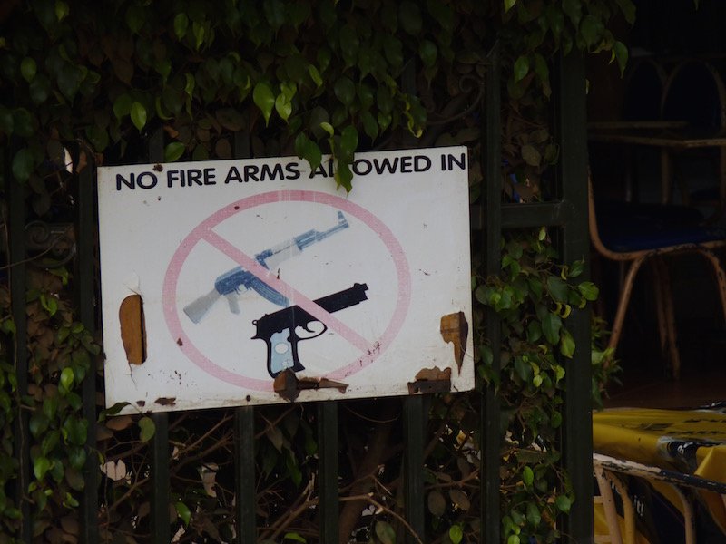 Auffällig waren die vielen Laster, Pickups und Fahrräder, voll geladen mit tiefgrünen Bananenstauden, Ananas und vielen anderen Gütern oder auch Personen. Wir sahen Schilder an den Bars und Diskotheken mit dem Hinweis "no fire arms allowed in", die uns ziemlich verblüfften. Undenkbar in Mitteleuropa.