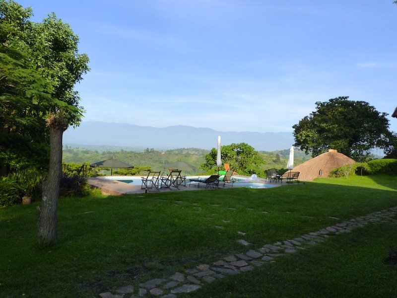 Nahe der Ndali Lodge, unserem nächsten Ziel, änderte sich die Vegetation allmählich und wir sahen nun auch die ersten Tee- und Bananenplantagen. Außerhalb des Kibale Nationalparks, auf dem Rand des Bunyaruguru Vulkankraters, der sich nach seinem erlöschen mit Wasser gefüllt hat, thront die Lodge mit einem atemberaubenden Weitblick über das private Farmland und auf den Kratersee.