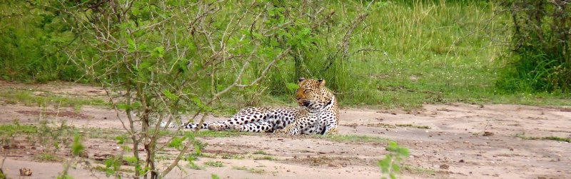 Auf unserer Rückfahrt stellen wir fest, dass der Leopard immer noch an der gleichen Stelle liegt. Alle anderen Fahrzeuge haben ihre Fahrt fortgesetzt und so haben wir ausgiebig Ruhe und auch Zeit die traumhaft schöne Raubkatze zu beobachten. Lediglich die hübschen Perlhühner schimpfen laut über uns, da wir Ihnen mit dem Wagen im Weg stehen.