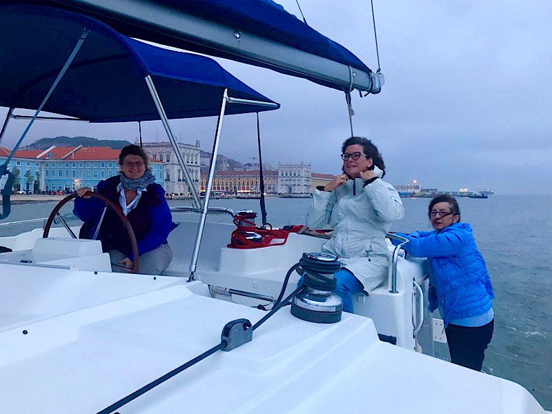 Nach dem wunderschönen Wetter morgens ist der Abend einfach nur mystisch, denn Nebel zieht vom Atlantik in die Lissabonner Bucht. Unser Skipper erklärt uns, dass dies normal sei. Ich bin im ersten Moment enttäuscht, lasse mich aber von der ausgelassenen Stimmung der Damen anstecken. Wir machen uns auf die Jagd nach dem besten Foto der Christusstatue, die immer wieder aus dem Nebel auftaucht. Auch die Crew trägt dazu bei, dass wir uns rundum wohl fühlen. Für flüssige Versorgung ist ausreichend gesorgt und so erleben wir trotz des Nebels einen wunderbaren Katamarantörn. Bei gutem Wetter segeln kann ja jeder.