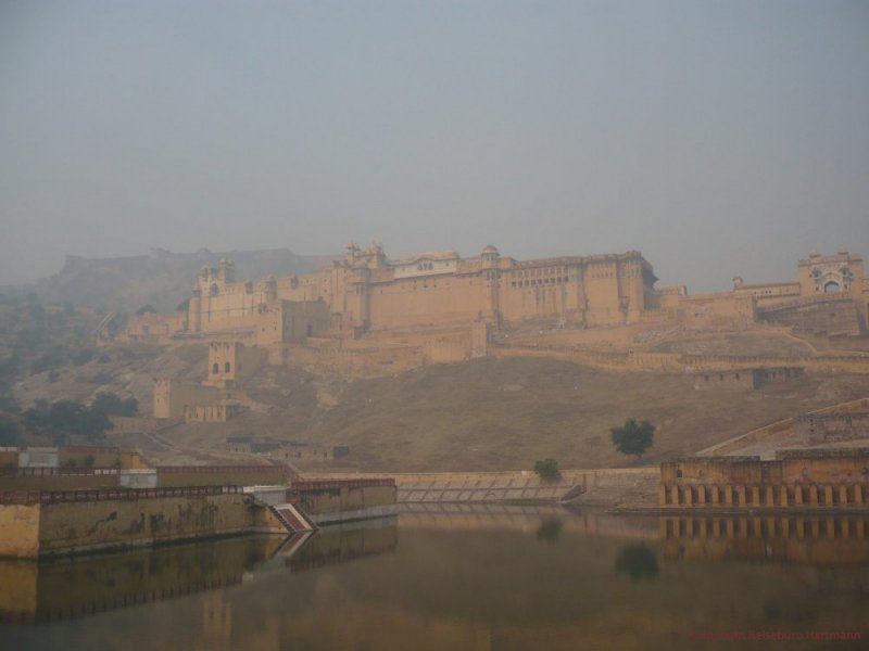 1.11.2010 Nach kurzem Stop am Palast der Winde fahren wir heute zum Fort Amber, dem ursprünglichen Herrschersitz des Maharadschas, bevor dieser nach Jaipur verlegt wurde. Auf Elefantenrücken reiten wir zum Eingang des Forts. Es ist einfach ein tolles Erlebnis, trotz der vielen Touristen. Der beindruckendste Bereich des Palastes ist Shees Mahal (die Kammer der Spiegel), ein großer Saal mit unzähligen Kachelspiegeln. Man kann sich sehr gut vorstellen, wie dieser Raum in vergangenen Zeiten bei Nacht mit Kerzenlicht gewirkt hat.