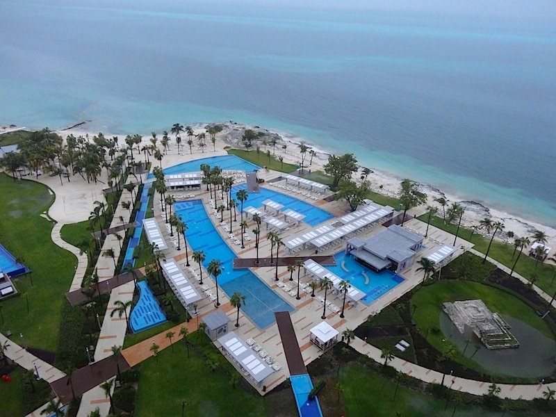 Gemeinsam geht es mit dem Bus zum RIU Palace Peninsula, das für die erste Nacht unser Schlafplatz ist. Das Hotel wurde gerade erst umgebaut und erstrahlt im neuen RIU Design. Überall finden sich die aktuellen Trendfarben Lila und Grün. Alles wirkt sehr modern und alle lassen das neue Design auf sich wirken. Ungewohnt sind das offene Bad und die Badewanne direkt neben dem Bett, Dusche und Toilette sind jedoch optisch abgetrennt.