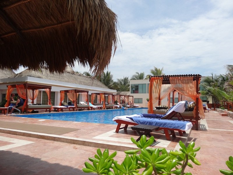Auf unserer Fahrt Richtung dem Badeort Playa del Carmen besichtigen wir noch ein weiteres Stadthotel in Cancun und das Hotel Secrets Maroma, das an einem der unberührtesten und schönsten Strandabschnitte Mexikos gelegen ist. Am Nachmittag erreichen wir nach 45 Minuten das RIU Palace Riviera Maya, in dem wir die nächsten 4 Nächte bleiben werden. Das Hotel liegt in der Hotelzone Playacar und ist im altbekannten kolonialen RIU Design erbaut. Farben wie Braun, Beige und Weiß sind die Hauptfarben des Hotels.