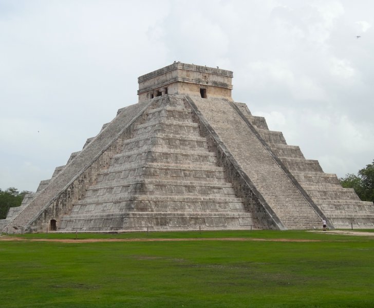 Danach fahren wir zum UNESCO- Weltkulturerbe Chichén-Itzá. Gleich am Anfang laufen wir zu dem bekanntesten Bauwerk, der Pyramide des Kukulkán. Die 24 Meter hohe Pyramide ist bereits von dem Kasseneingang zu sehen. 91 steile Stufen führen jeweils an den vier Seiten hinauf, macht zusammen 364 plus eine Stufe für den Tempel – die Tage des Sonnenkalenders. Die Treppen der Vorderseite enden an ihrem Fuß in jeweils zwei Schlangenköpfen. Während der Tagundnachtgleiche (21. März und 22. September) wirft die Sonne nachmittags den Schatten der neun Plattformen so auf die Nordwestmauer, dass drei Stunden lang der Eindruck entsteht, die Schlange winde sich die Stufen hinunter. Weitere faszinierende Bauwerke sind u.a. der Ballspielplatz, das Observatorium und der Tempel der Krieger. Erschöpft lassen wir uns am Abend in die Betten des Hotels Villas Arqueológicas fallen. Die Zimmer sind einfach, aber sehr geschmackvoll eingerichtet. Tierische Geräusche, sowie ein Gecko sind inklusive.