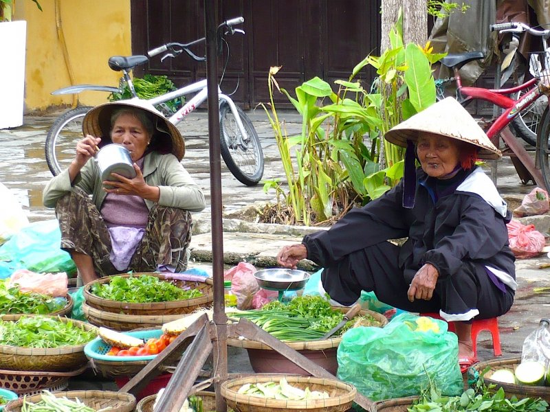 Am Nachmittag füllt sich auch der Gemüsemarkt. Ein tolles Erlebnis den Vietnamesen beim Handeln und Einkaufen zuzuschauen. Am Abend geht die Gruppe geschlossen in ein sehr nettes kleines Restaurant (Miss Ly), dass von einem Amerikaner mit seiner vietnamesischen Frau geführt wird. Eine gute Empfehlung! Ein Teil der Gruppe geht zurück ins Hotel. Der harte Kern stürzt sich ins Nachtleben von Hoi An. Einige Läden sind auch noch spät abends geöffnet und die Bars der Stadt recht gut besucht. Nach einem Absacker- Cocktail geht es dann auch für uns ins Bett.