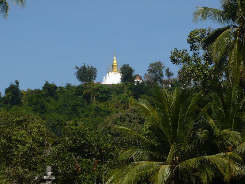 13.11.2013 Die morgendliche Aussicht aus meinem Fenster enttäuscht mich nicht. Noch leicht im Nebel liegend, umgeben von grünem Gebirge habe ich einen wunderschönen Blick auf die noch verschlafen wirkende Stadt. Luang Prabang war die Hauptstadt von Lane Xang, dem mächtigen Reich der 'ein Millionen Elefanten', und über Jahrhunderte Sitz der Könige von Laos. Bis heute ist Luang Prabang Zentrum des laotischen Buddhismus. Seit sich Laos öffnet und Luang Prabang zum Weltkulturerbe erklärt wurde, wird mit ausländischer Hilfe restauriert. Immer mehr Touristen besuchen die Stadt. Doch noch lebt Luang Prabang, wie es immer gelebt hat - im sanften Rhythmus der Religion, ruhig, fast gemächlich fließt die Zeit, in der alten Königsstadt am Mekong.