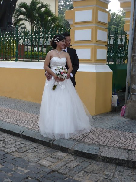 Nur die vielen vietnamesischen Hochzeitspaare die sich zur Fotosession um die Gebäude aufstellen und die schwüle Hitze verdeutlichen uns, dass wir tatsächlich in Vietnam gelandet sind.