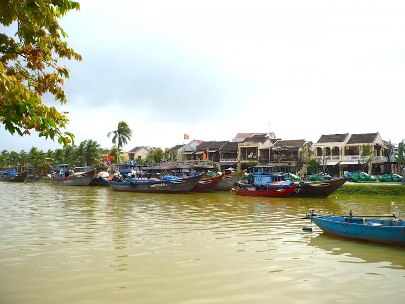 Nach dem Mittagessen fahren wir zurück nach Saigon zum Flughafen. Es fängt heftig an zu regnen und die Mopedfahrer auf der Straße hüllen sich in Regenkleidung. Die Straßen stehen unter Wasser und in mancher Straße kommt der Verkehr wegen Überschwemmung fast zum Erliegen. Wie ist das erst in der Regenzeit? Trotzdem schaffen wir es pünktlich am Flughafen zu sein. Tschüß Saigon. Am späten Abend erreichen wir den Flughafen Danang in Zentralvietnam und fahren zu unserem Hotel in Hoi An.