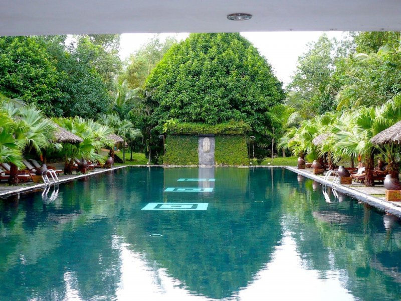 Leider macht dieser Pass seinem Namen alle Ehre und wir überqueren ihn bei Nebel. Auf der anderen Seite angekommen erblicken wir die wunderschöne Lagune von Lang Co. Erst bei Dunkelheit erreichen wir Hue. Wir übernachten heute im schönsten Hotel unserer Reise dem Pilgrimage Village. Die Zimmer des Resort und die Gartenanlage mit riesigem Pool sind ein Traum!